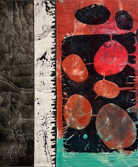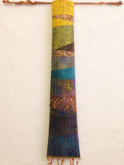 Painted and screen-printed fabric and paper, luscious color, free-form stitching, burnt organza and other materials…these are my tools for creating distinctive art. Click on an image below or visit the gallery to view all available pieces. Thanks for stopping by.