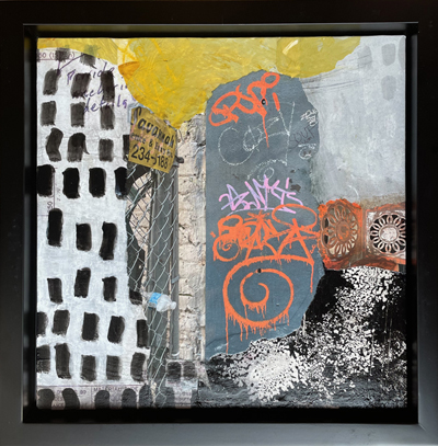 I’ve been enjoying creating these little collages on 12×12″ boards. All include papers I’ve picked up off the street and/or images I’ve taken, along with other found and painted papers. Collages are $100 unframed.